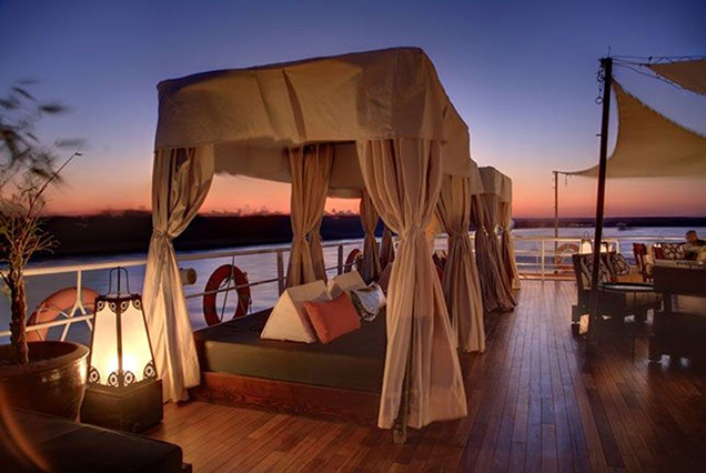 Each cabin boasts floor-to-ceiling windows with breathtaking Nile views, a seating area, flat-screen TV, WiFi, a mini-bar, and a modern marble bathroom. Whether traveling solo or as a couple, every guest enjoys premium comfort.